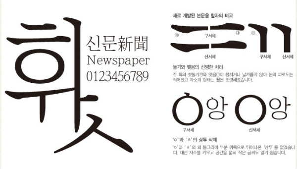 중앙일보 베를리너판 전용서체인 ‘중앙폰트’에 대한 문의가 줄을 잇고 있다. 아름답고 기능적인 서체인 중앙폰트는 “명조와 고딕의 고유한 특성을 살리고 가독성을 높인 글씨체”라는 평가를 받고 있다. 총 8종류로 제목용 고딕체 4가지와 제목용 명조체 3가지 본문용 명조체 1가지로 이뤄진다. 기존 것과 비교해 명조체의 돌기와 맺음을 뭉치거나 날카롭지 않게 처리해 또렷하고 선명하게 보인다. ‘ㅇ’과 ‘ㅎ’의 동그라미 부분 위쪽으로 튀어나온 ‘상투’는 없애고 자소를 키워 작은 글씨도 읽기 쉽게 만들었다.   중앙폰트는 중앙일보 베를리너판 사이트http://newj.joins.com/ berliner/joongangfont.asp에서 파일형식으로 다운로드 받아 사용할 수 있다. 단 개인용으로만 사용할 수 있으며 변조·왜곡·개작할 수 없다. 매체를 통해 출판·방송·배포·전송·전시·판매할 경우 중앙일보의 사전 허가를 받아야 한다.   김효진 과장·조인스닷컴 사보기자   |